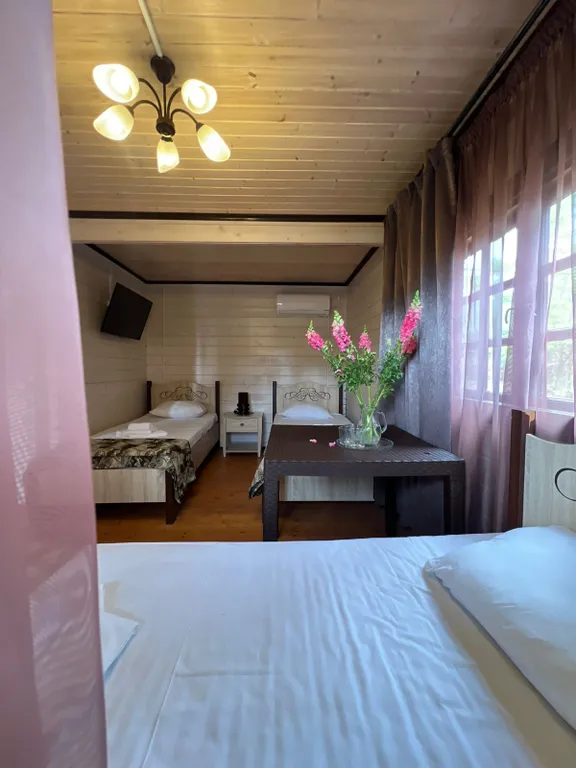 Нас не ждали (хоть и была внесена предоплата), можно сказать, что хозяйку застали на месте случайно. При этом заселение прошло, всё норм. С виду в номере довольно уютно, но пружины, торчащие из матраса, лай бродячих собак на территории отеля, бесконечный шум дороги, которая проходит прямо с отелем, даровали нам две бессонные ночи (на третью ночь мы уже просто собрали чемодан и уехали). Место не для пляжного отдыха, так как до моря идти через автомобильное шоссе, через ж/д дорогу и ещё в обход прибрежных отелей. Сам пляж в этой зоне тоже не заслуживает внимания: узкий и завален какими-то бетонными конструкциями. За два дня пребывания в отеле хозяев мы не видели, только лишь борзо припаркованный автомобиль прямо на зелёной зоне территории отеля (предположительно, смотрителя или владельца отеля). Из множества номеров заселено было только два-три, что делало проживание сносным, если бы ко всему описанному добавить многолюдный топот и людскую суету, то съездили бы ещё раньше.
