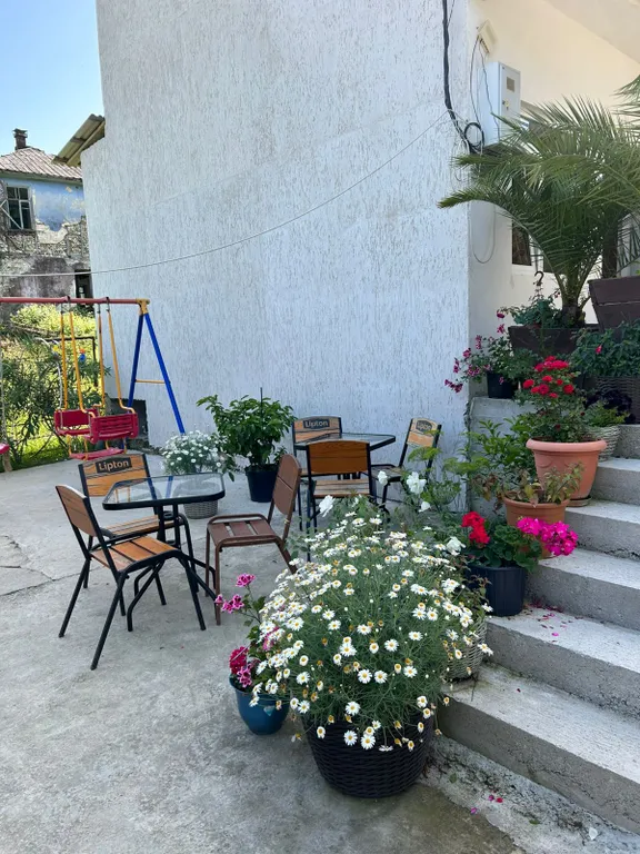 Дом расположен недалеко от моря, прямо около дома можно поесть в любой момент, далеко курортный шум- возможно погружение в местный быт и тишину. Недалеко имеется водопад, до которого можно самостоятельно добраться